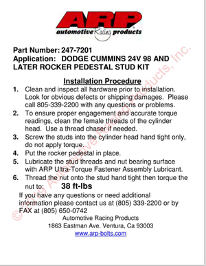 ARP 247-7201 Rocker Pedestal Stud Kit